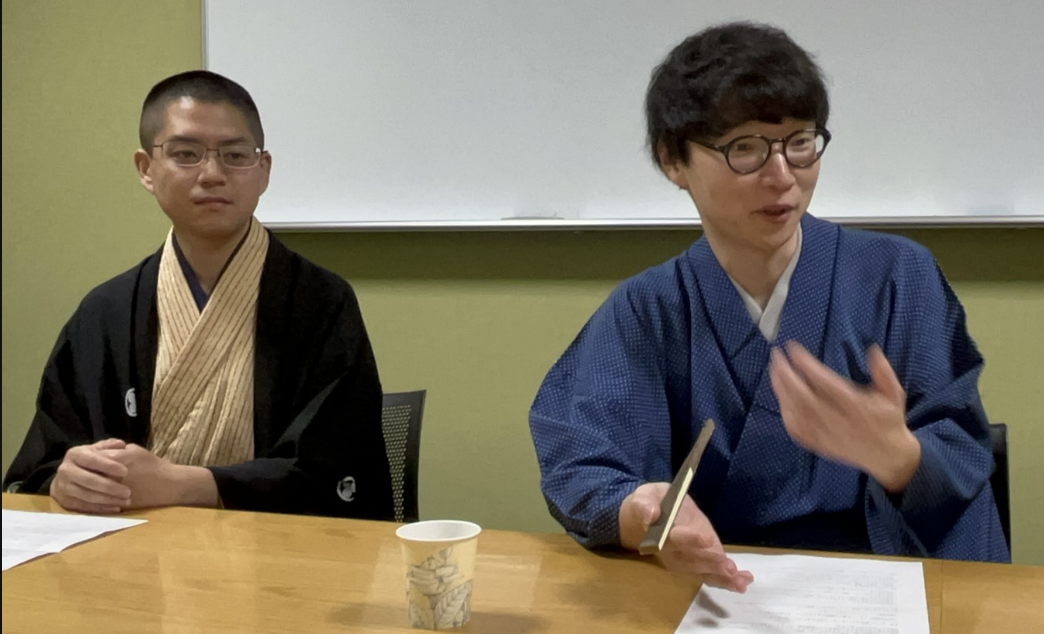 落語会に先立ち、二人のインタビューを動画に撮り、学年の Google Classroom に上げました。紆余曲折の末に噺家に至った二人から、中一生への進路についてのアドバイスを意図しています。不登校に悩みながら乗り越えて大学の特待生として公認会計士を目指しながら、竹丸師匠の落語に出会ってビビッと来て、親に大反対されながら入門した笹丸さん。開成を出ながら大学を中退し、人力車曳きや海上自衛隊幹部を経て親の猛反対にあいながら、さん喬師匠にお百度参りをして入門した小次郎さん。開成生へのアドバイスとして、笹丸さん「回り道のように見えても人生無駄なんかないよ、全部つながるから」、小次郎さん「開成生ならやっぱり勉強が大事だよ、色々な職場で勉強は活かされるんだよ」という言葉を贈ってくれました。大変有意義なインタビューになりました。お二人どうもありがとうございました。