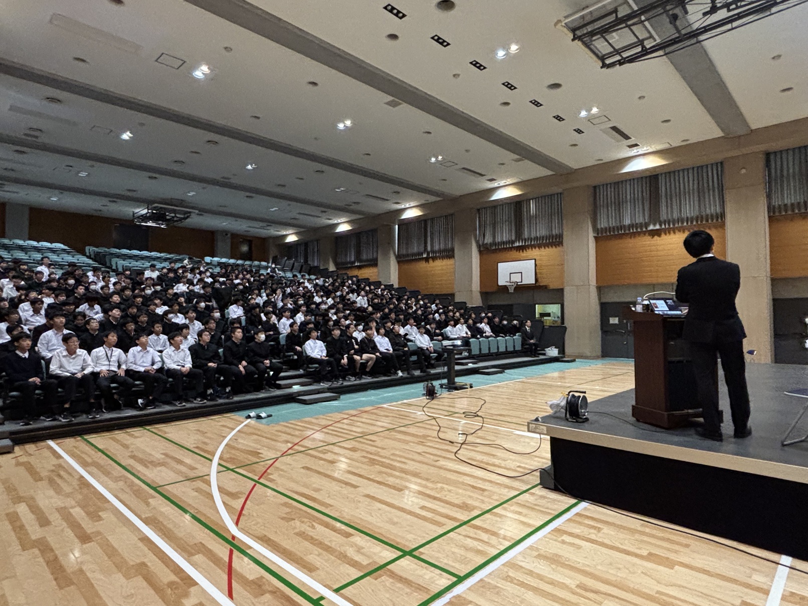 生徒たちは、普段なかなか接することのないパラスポーツという話題に興味を持ち、真剣に話を聞き、考えていました。講演後には「健常者と障がい者が一緒にスポーツを楽しむためにできる工夫は何か」「障がい者スポーツ特有の見どころはどこか」などについて活発な質疑が交わされました。