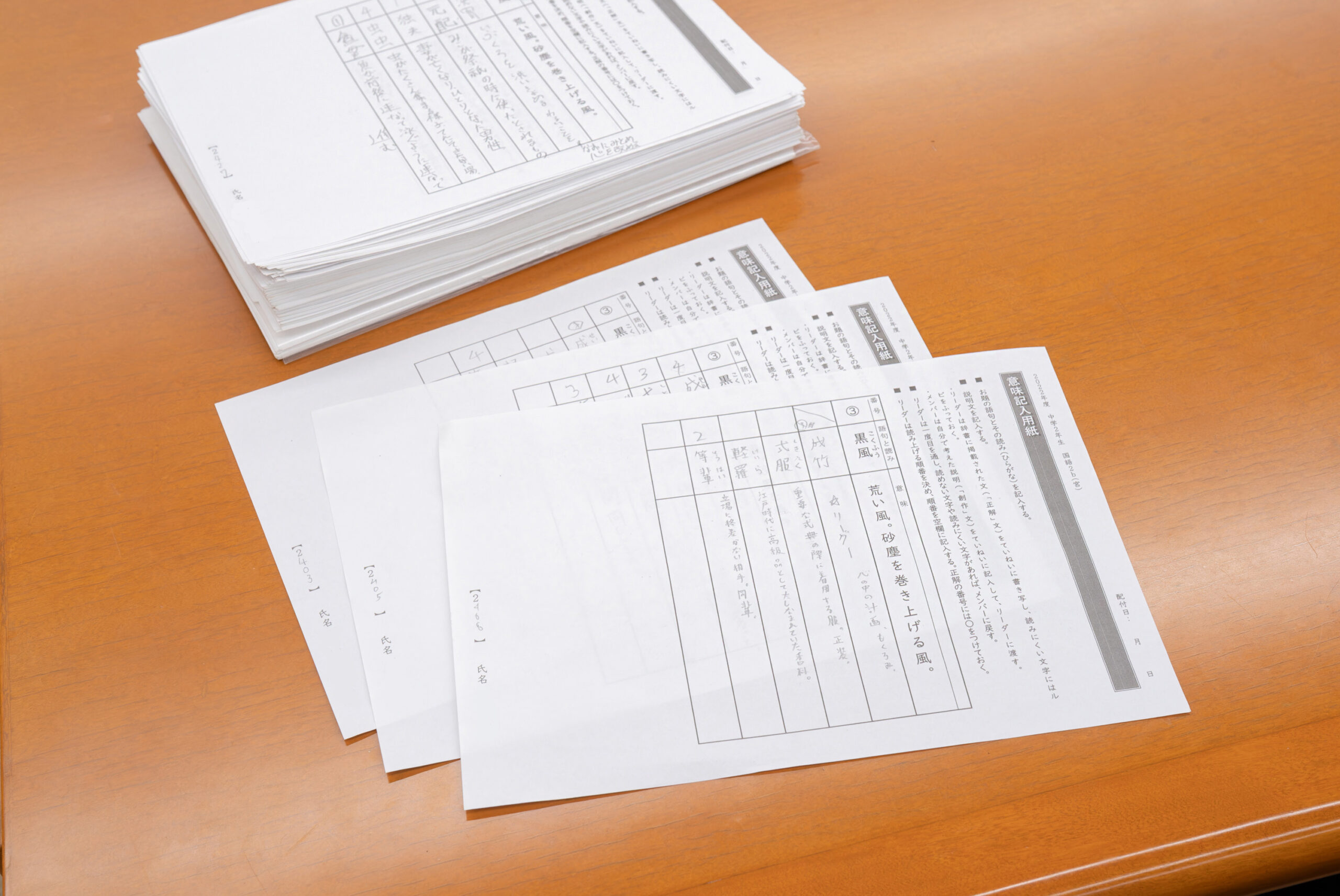 「え? 間違った答えを書くんですか?」 生徒たちの最初のとまどいはこれです。思いのほか、とまどいが大きいのは、正解をいち早く出すことを得意とし、それを評価されてきた生徒たちならではなのかもしれません。真面目な子ほど不正解を書くことへの抵抗が強く、手が動き出すまでに少々時間を要します。一方であまり考えずに適当な偽の説明文をどんどん書けるタイプの子もいるのですが、適当に書いた答えではあっさり嘘が見破られ、誰もひっかかってくれません。逆に友達の考えた偽の説明文に簡単にだまされてしまい、減りゆく持ち点を前に深く考えざるを得なくなる。かくして、誰もが主体的に漢字と向き合い、偽の説明文づくりに楽しく知恵をしぼることになるのです。